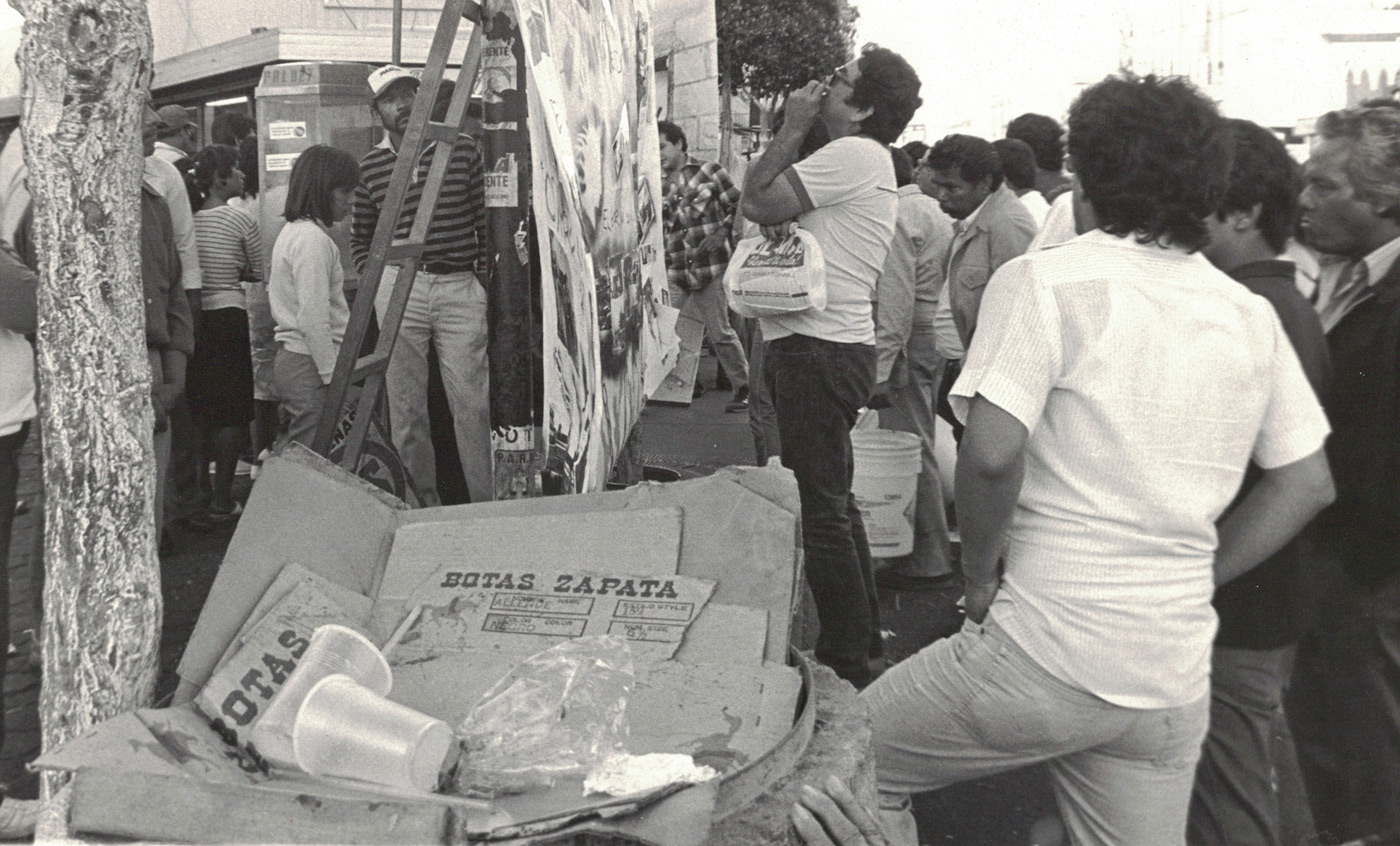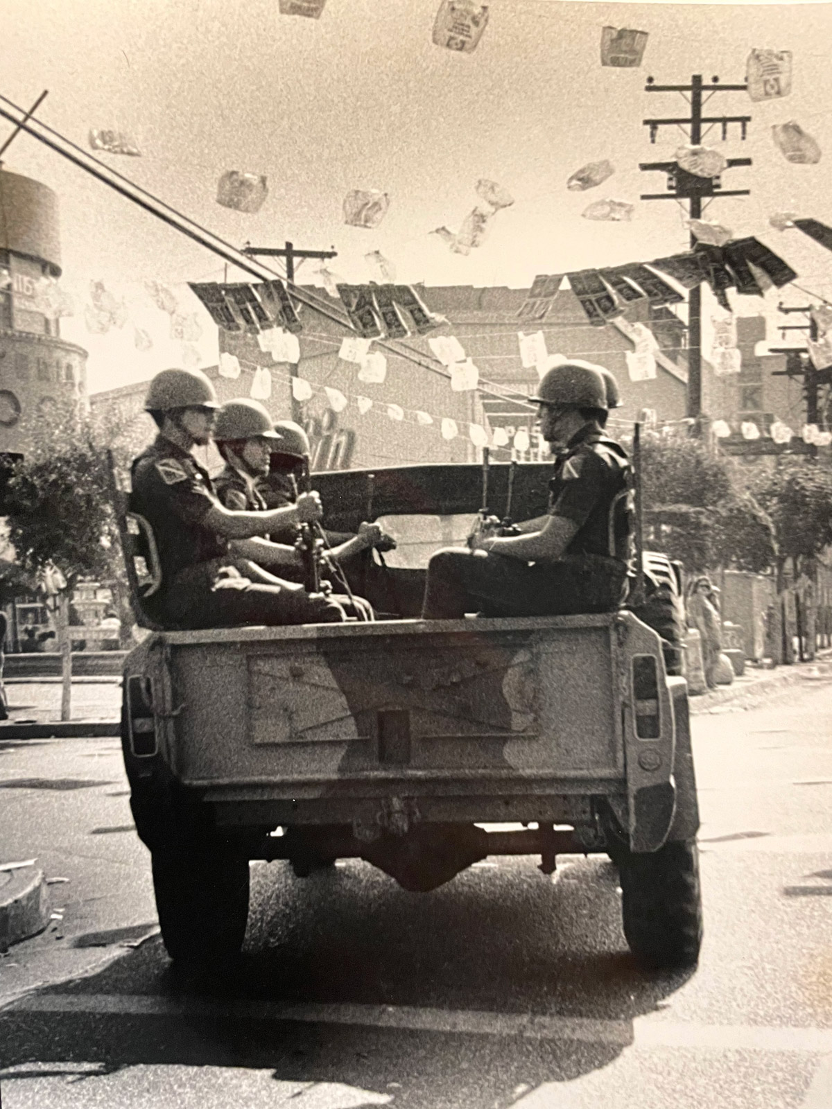 Militares en las elecciones presidenciales de 1988 en la Ciudad de México. Material usado para los murales portátiles de/ Soldiers at the 1988 presidential elections in Mexico City. Photograph used for the portable murals of Las actas YA!!! (1988). Imagen de/ Image by Berta Jottar.