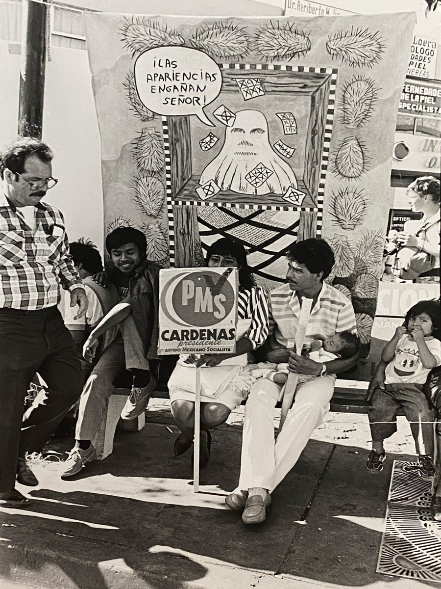 Calle segunda y Constitution. First street event organized by women artists and activists denouncing the presidential electoral fraud, the case of the vanishing vallots [sic]. Las actas YA!!!