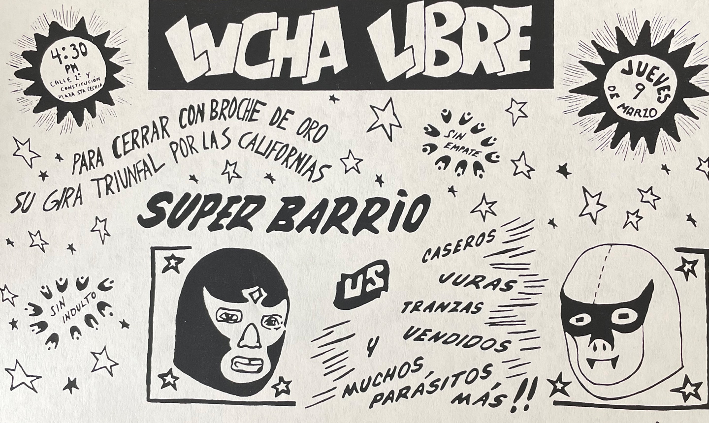 Flyer de/ of Lucha libre/ Wrestling (1988), Súper Barrio en/ in Tijuana. Archivo María Eraña Archive.